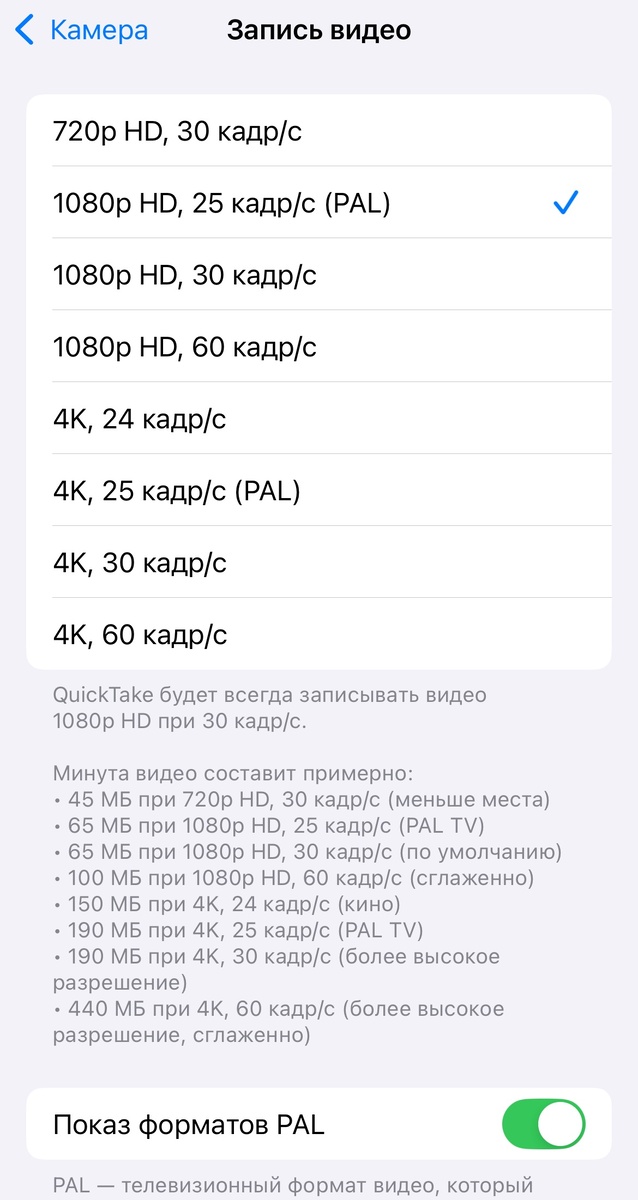 ✔ Активируем переключатель «Показ форматов PAL»;