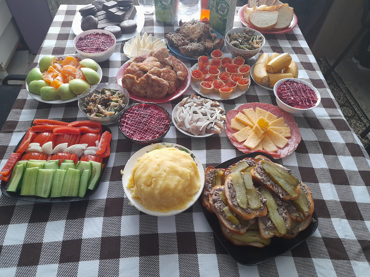 НОВОГОДНИЙ СТОЛ ЗА 3 ЧАСА Этот стол был в прошлом году, но цены пересчитала на декабрь 2024 года.. 🥩Филе грудки - 700г (245 р) 🥚Яйцо - 2 шт (15 р) 🍞Сухари панировочные - 100г (8 р) 🐟Форель дикая - 750г (379 р) 🦑Кальмары заморож. - 500г (170 р) 🫘Фасоль стручковая - 100г (26 р) 🍄🟫Шампиньоны - 100г (49 р) 🧅Лук репчатый, морковь, свекла, чеснок ~ (70 р) 🥔Картофель 1,6 кг (80 р) 🐟Сардина - (90 р) 🧂Соус майонезный - 150г (60 р) 🧀Сыр "российский" Bamin - 150г (95 р) 🍕Колбаса (нарезка) - 100г (90 р) 🍌Бананы - 2 шт (60 р) 🥺Мандарины - 5 шт (90 р) 🍏Яблоки - 3 шт небольших (54 р) 🐠Сельдь - 200г (149 р) 🐟Икра - 100г (600р). Мне в этом году сестра привезла в подарок. 🐟Форель с/с - 150г (299р. В Атаке) 🧀Сыр растительный- 130г (136 р) 🥖Тарталетки - 1 уп (80 р) 🥖Хлеб - 2 половинки (55 р) 🍫Чоко-пай - 1 уп (80 р) 🍫Вафли шоколадные - 1 уп (70 р) 🧃Сок - 1 л*2 (246 р) 🍾Минералка - 1.5 л (54 р) 🍾Газировка - 2 л (129 р) ИТОГО: 3 479 р. Это 625 рублей на человека. За один раз