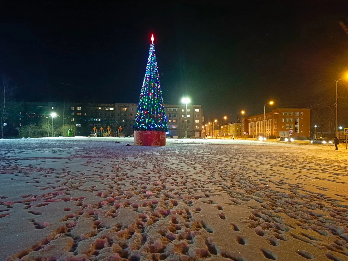 Жители Медвежьегорска пожаловались на неубранный снег у новогодней елки