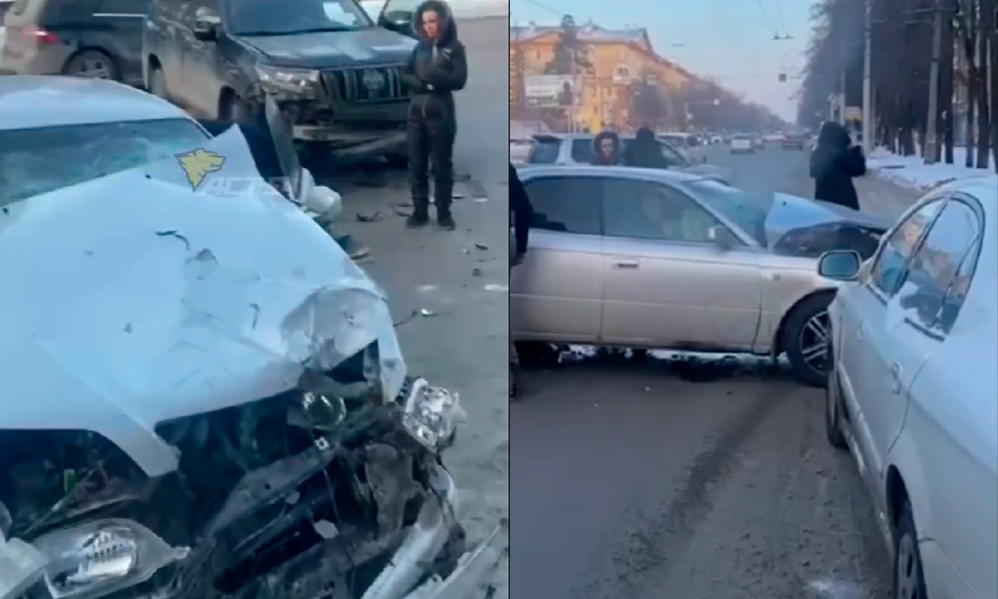 Две иномарки столкнулись на трамвайных путях в Новосибирске