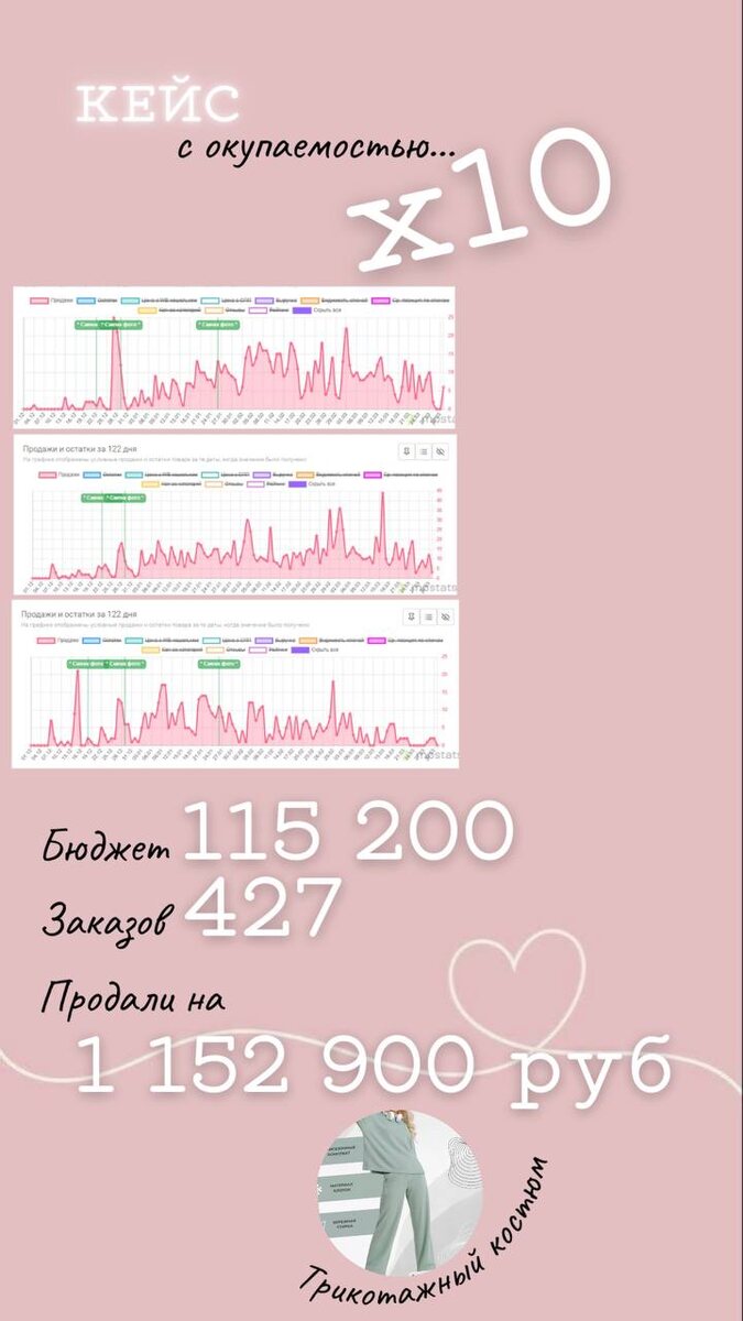 В этой статье я хочу поделиться с вами примером успешного сотрудничества, которое продемонстрировало, что реклама у блогеров – это не всегда рулетка, а порой очень продуманная стратегия, когда за дело берется специалист. Ко мне обратился селлер с товаром — трикотажным спортивным костюмом. Это был новый товар заказчика, запущенный в несезонный период, и наша основная цель заключалась в том, чтобы максимально выйти в плюс с наиболее эффективной рекламой. Задача была непростой: как продать товар, в котором не так много интереса в текущий момент года? Чтобы ответить на этот вопрос, необходимо было проанализировать рынок и выбрать правильную аудиторию. Я приступила к анализу целевой аудитории и подыскала блогеров, чьи подписчики активно интересуются женской одеждой среднего ценового сегмента. После детального исследования и фильтрации я отобрала 30 блогеров, которые