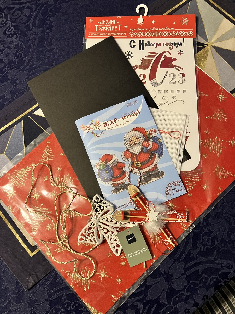 Приближается Новый год!!! Ураааа!!!! Новые надежды и ожидания ..... или не такие уж и новые, но все равно вера в то, что все будет хорошо перед новым годом всегда усиливается ))))) И так, на работе объявили конкурс на лучшую новогоднюю открытку. Участвуем!!! Затариваемся материалами (не дешевая получилась открытка, хотя, не все из того, что купила пригодилось). Купила вышивку с изображением Деда Мороза. Вышивка на пластиковой канве, впервые с такой сталкиваюсь, попробуем. По замыслу производителя надо вышить переднюю и заднюю части изображения, а потом их сшить. Но у меня план другой ))
