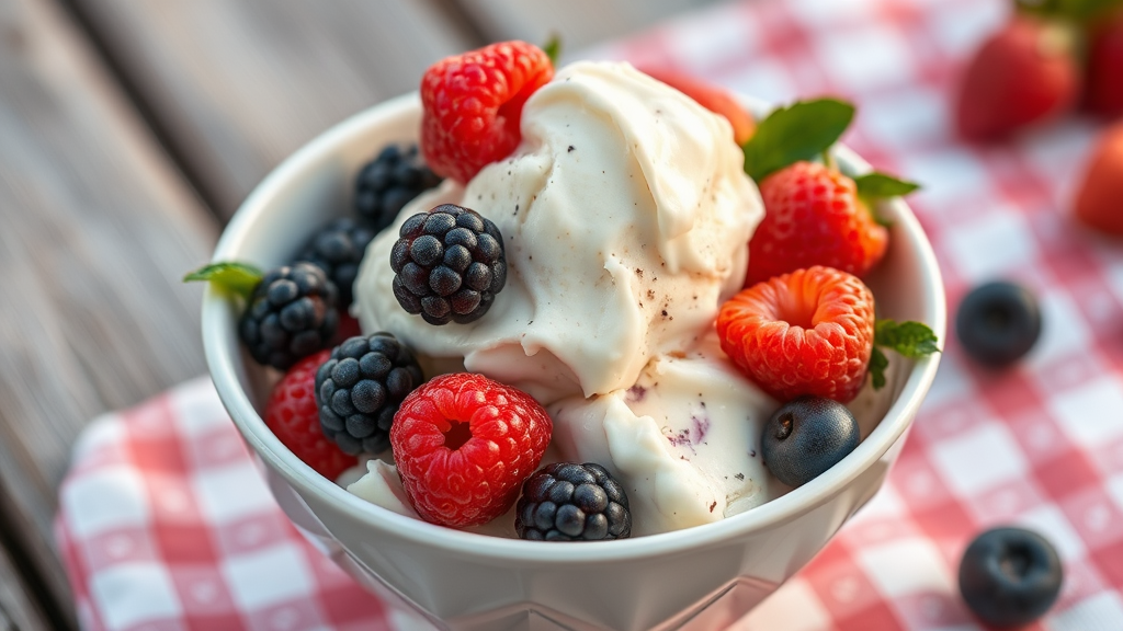 Всего 3 ингредиента. Рецепт нежного сливочного мороженного за 5 минут Настало время тепла, радости и свежести! Представьте, как солнечные лучи мягко касаются вашей кожи, а в воздухе витает аромат спелых фруктов и сладости. Вот оно, идеальное время для приготовления удивительно простого и нежного сливочного мороженого, которое станет настоящим украшением летнего вечера с семьей или друзьями. Этот рецепт займет всего 5 минут вашего времени, а вкус подарит вам незабываемые моменты наслаждения! Ингредиенты 500 мл сливок (с высоким содержанием жира, чтобы морозить лучше — предпочитайте местные сливки, полученные от коров с экологически чистых пастбищ) 200 г сгущённого молока (выберите домашнее, чтобы оно восемь раз радовало вас своей насыщенностью и глубиной вкуса) 100 г любых ягод (клубника, малина или черника — все эти плоды будут напоминать о лете и наполнят мороженое невероятным фруктовым вкусом) Приготовление В глубокой миске взбейте сливки до получения мягких пиков, это займет всего п