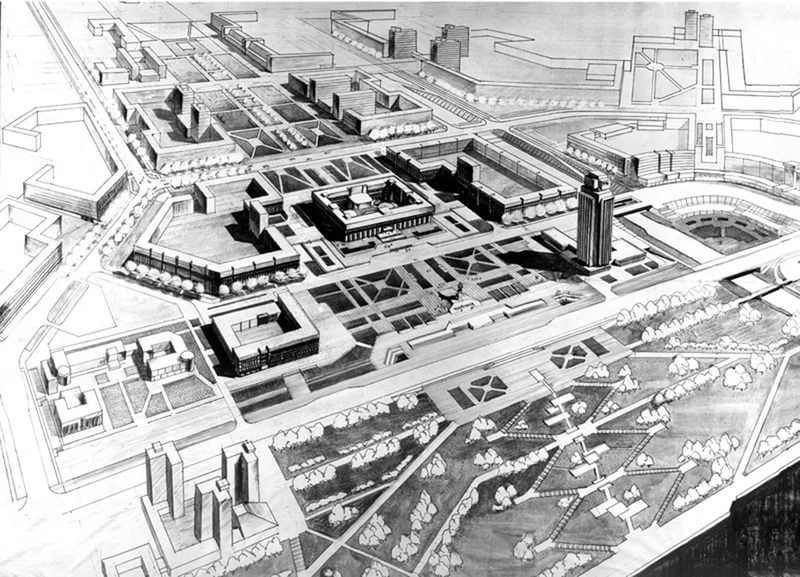 При этом здесь планировалось разместить краевой комитет КПСС и краевой исполнительный комитет, то есть осуществить переезд из исторического центра Красноярска в Новый центр всего руководящего состава края. Был проведен открытый архитектурный конкурс на лучшее градостроительное решение Нового центра. Победили архитекторы из Новосибирска. Красноярцы заняли второе место, но дальнейшая проработка проектных решений была поручена проектному институту «Красноярскгражданпроект». Первая градостроительная мастерская работала над проектом детальной планировки. Проект нового здания крайкома КПСС выполняла мастерская под руководством архитектора Владимира Ульянова.