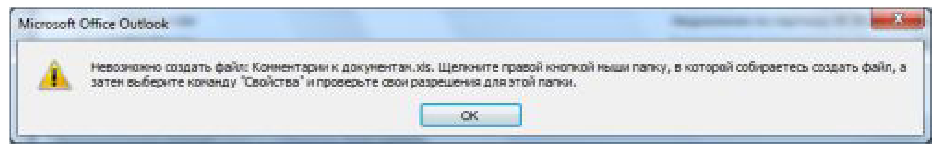 Outlook 2007 при попытке сохранить XLS файл начал выдавать сообщения об ошибке: «Невозможно создать файл *.xls. Щелкните правой кнопкой мыши папку, в которой собираетесь создать файл, а затем выберите команду «Свойства» и проверьте разрешения для этой папки». решение: (Если у вас другая версия Office то вместо 12.0 может быть другой