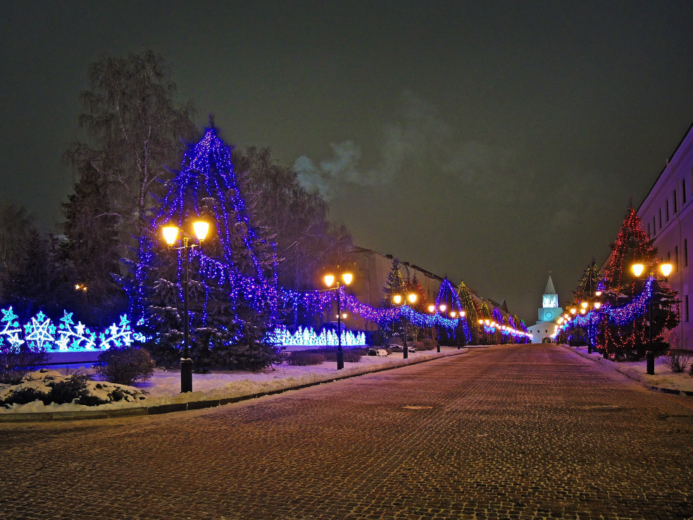 Продолжение рассказа о прогулке по новогодней Казани в середине декабря 2018 года. Предыдущие части можно найти в общей подборке по ссылке в конце статьи. Прогуливаясь по Казани, конечно, невозможно не зайти в кремль. Это настоящее сердце города. Правда, в сезоне НГ2019 почему-то его территория была украшена очень скромно. Поэтому пробежался совсем быстро, скорее ради самого факта. Особенно разница чувствовалась в сравнении с НГ2016. Тогда размах именно на этой точке был гораздо масштабнее. Одно световое шоу на Спасской башне чего стоило. Центральная аллея. Сквер около Благовещенского собора. Пушечный двор. Мечеть Кул Шариф. Продолжение рассказа будет чуть позже. Для сравнения - обзор от декабря 2015 года. Общая подборка материалов из Казани. Другие подборки с новогодней тематикой.