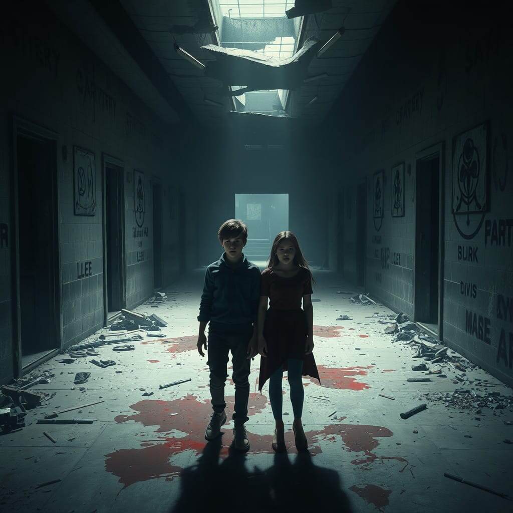 Сердце сжалось, и, казалось, что само здание сжалось с ними, готовое поглотить. Страх и ужас стали их единственными спутниками. Но самое страшное было в том, что в этом месте они начали чувствовать, как будто их собственные шаги и мысли становятся частью этой страшной картины.