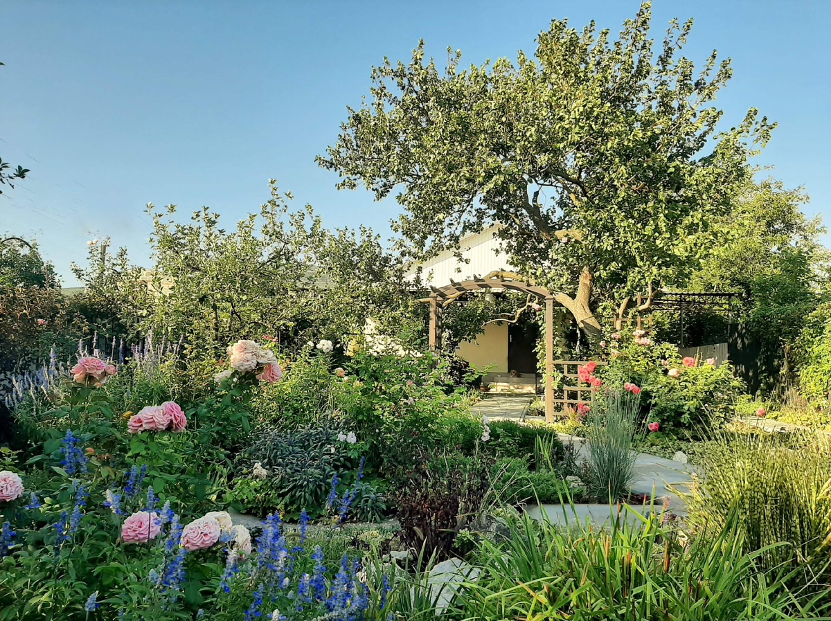 Иногда, в своих мечтах, мне хочется посадить новый сад и должен он начинаться с чистого листа, то есть с ровного, а лучше с перепадами высот, голого участка. Я бы взяла в руку карандаш или открыла в компьютере графическую программу и начала с посадки деревьев, а потом добавила бы к ним кустарники и равномерно распределила между ними хвойные растения и т.д. и т.п. В становлении моего сада всё получилось не совсем так, а точнее совсем не так, по сути, я даже дом не смогла разместить, там, где мне хотелось, так как на участке уже был фундамент с подвалом, на нём мы дом и поставили. В общем пришлось подстраиваться к уже имеющимся строениям и насаждениям. Взрослые плодовые деревья на участке тоже были, на сегодняшний день из того состава осталось всего одно дерево, это абрикос. Я это дерево люблю, считаю очень фактурным и боюсь его потерять. Тем более, если абрикос поломается, то от моей арки останутся только воспоминания, ну и дрова. Плодами абрикос нас ежегодно не балует, в нашем регионе