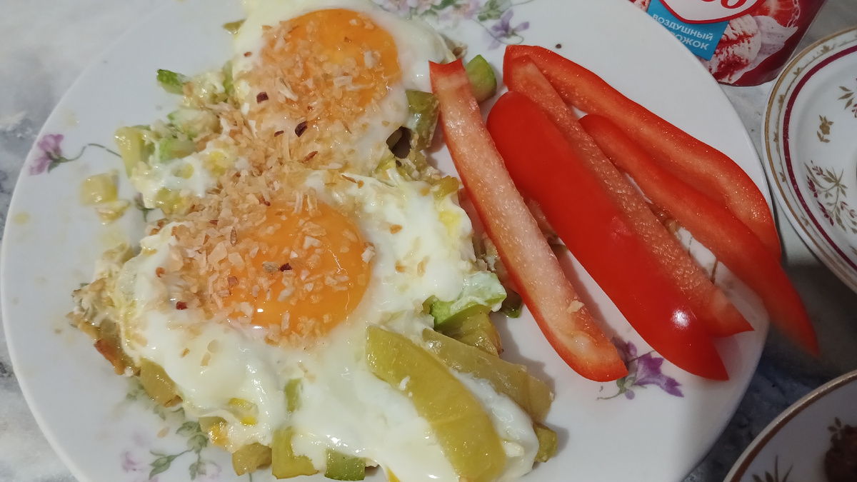 На завтрак сегодня яичница с овощами. Добавляла кабачок и болгарский перец. А сверху присыпала хрустящим жареным луком. также творожок, кофе и шоколадная колбаса На обед доедали суп с индейкой и овощами. Мои еще творожки ели. а я кофе попила с овсяным печеньем и сыром бри А потом еще раз кофе попила - картинка будет та же самая 🤩 На ужин у меня оставалась тушеная капуста с изюмом. К ней потушила котлетки из кролика. Меню год назад Тушеная капуста Сегодня только котлеты на ужин приготовила. Это почти не считается - слепила и положила на сковородку. Но мы сегодня все доели - и суп, и гарнир в виде тушеной капусты. Завтра буду дежурить у мартена 💪 Завтрак, обед, ужин и десерт 🤩