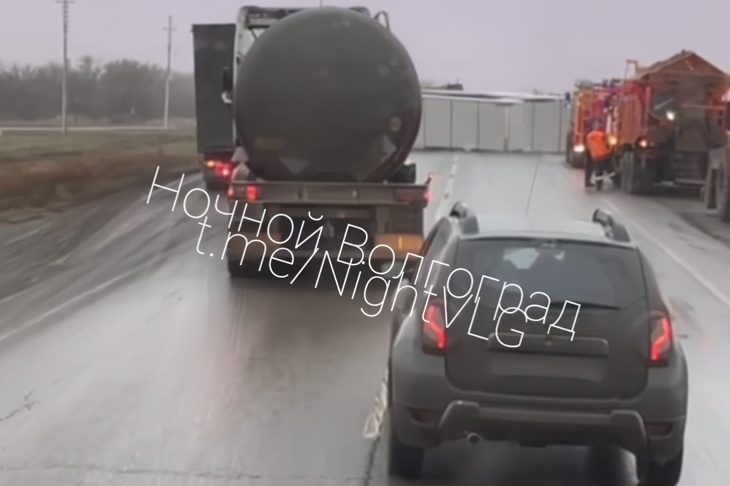 В Калачёвском районе Волгоградской области оказалось осложнено движение по участку автотрассы «Волгоград — Каменск-Шахтинский — Луганск». Как сообщает ИА «Высота 102», фура перевернулась на 70-м километре дороги, перегородив движение транспорта по проезжей части. Последствия произошедшего очевидцы засняли на видео.