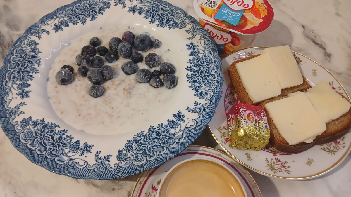 Завтракаю такой же кашей, как и вчера - из резаного овса. Добавила ягоды уже в тарелку, сегодня только голубику. Творожок, кофе, бутерброды с сыром, халва в шоколаде На обед борщ на курице с фасолью, картошку не клала. И борщ, и фасоль с овощами из банок. Сварила на курице бульон, добавила 2 банки-заготовки - и первое блюдо готово. Плюс запеченная курица (вчера запекала со сметаной и чесноком) Ужин был готов - курица запеченная со сметаной и чесноком, овощи, на гарнир - полента Меню год назад