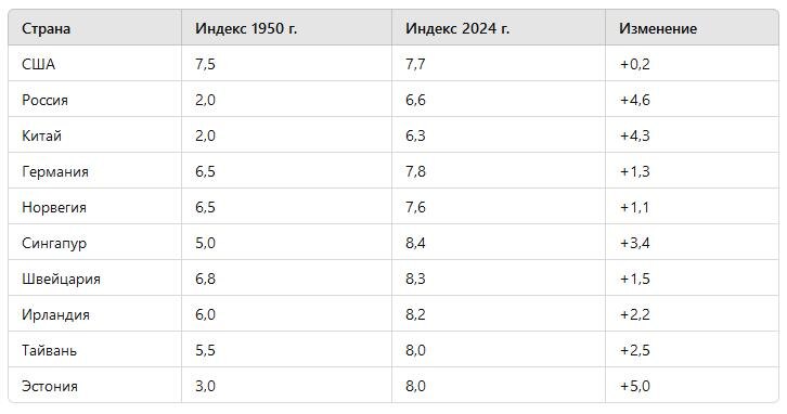 От несвободы к прогрессу: как изменился уровень экономической свободы с 1950 по 2024 годы