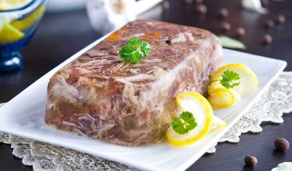 Еще в нем содержится много витаминов группы В, а ещё калий, магний и фосфор, которые важны для здоровья суставов. К тому же блюдо повышает гемоглобин и укрепляет зрение. Пробовала варианты разные, чтобы понять – традиционное сочетание свинины и говядины, мне нравится больше остальных. На рынке закупаю: ножки свиные – 2 шт, рульку маленькую свиную и кусок говядины на кости – 1,5 кг. Такое сочетание не подводило ни разу, бульон прекрасно застывает без