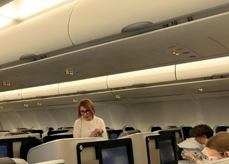 То ли самка бизнесмена или чиновника на отдыхе, то ли сама "добилась успеха" и теперь демонстрирует это окружающим, но у этой пассажирки место было у окна, а ее подруга сидела в среднем ряду через ряд. Так наша героиня так хотела общения с подругой, что встала рядом с соседкой подруги и через нее начала свой пустой треп. Болтовня началась еще когда все усаживались в кресла. Но потом она продолжилась, когда самолет набрал высоту и встал на курс. Не прекращалась она, когда начали ужинать. Стюрдесса разнесет всем еду, в том числе и соседке подруги, и дамочка тут как тут, соседка ест, а эта через нее наклоняется и что-то болтает. От ее болтовни стало уже мне тошно. Представляю какие чувства испытывала пассажирка. Продолжался этот аттракцион "вежливости" где-то два часа. И у нашей дамочки абсолютно не возникло мысли, что она что-то делает не так. Соседка, кстати китайка, почему-то публично никак не реагировала. Хотя ее гримасы недовольства на лице видны на видео.