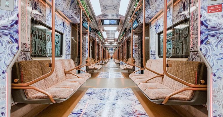 С названием решили не мудрить — новогодний состав будет носить имя «Ледяной», говорится на сайте мэра Москвы. С виду кажется, что поезд приехал на Кольцевую прямиком из 40-градусных сибирских морозов: вагоны украсили инеем, снежинками и сосульками.