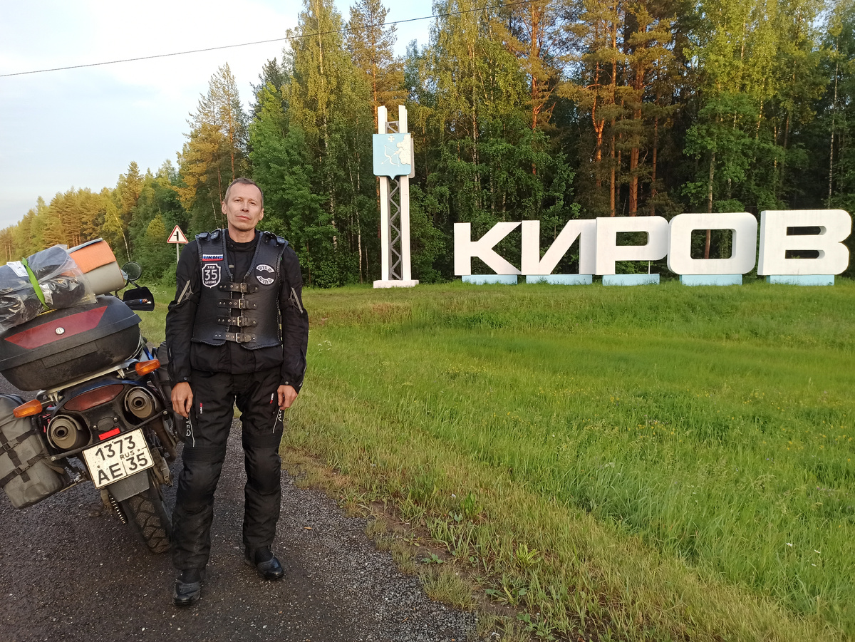 До Кирова добрались за день. После того, как переночевали в Коряжме у друзей из местной чепты Вологодского мотоклуба «Дикий ветер», рано утром выдвинулись в путь. Миновав село Ильинско-Подомское, на границе Архангельской области и республики Коми «встретили» ремонтный участок, несколько снизивший нашу скорость (интересно, как там сейчас, отремонтировано?).