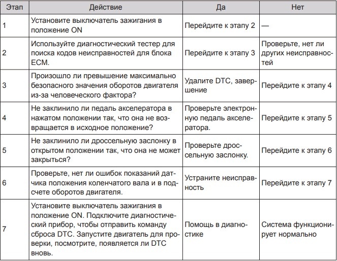 Описание диагностического кода (DTC): превышение оборотов двигателя.