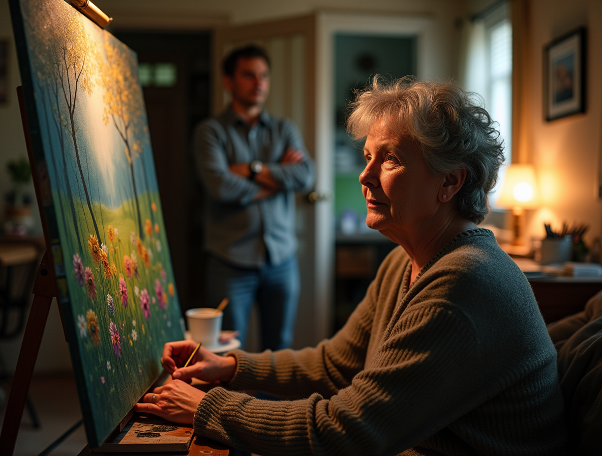 Теперь, двадцать лет спустя, она снова чувствовала то же волнение, ту же радость творчества. В последние месяцы она все чаще возвращалась к рисованию — сначала робко, почти виновато, пряча альбом с набросками. Но постепенно это превратилось в потребность, в глоток свежего воздуха среди рутины домашних дел. Здесь, перед мольбертом, она вновь становилась той девчонкой, которая мечтала о художественной академии и персональных выставках.