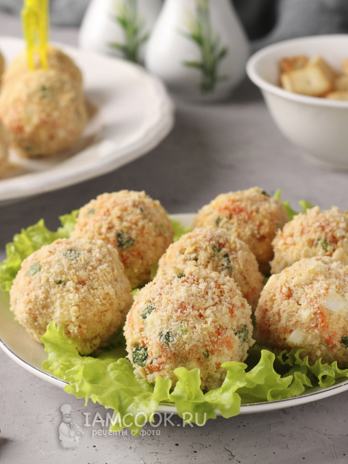 Они сочные, яркие, легкие в приготовлении и всегда собирают восторженные комплименты от гостей. Рекомендуем! 🛒 ЧТО НАМ ПОНАДОБИТСЯ: 👩🍳 КАК ГОТОВИТЬ: 1. Начинаем с базовых шагов: варим куриное филе, яйца и морковь. Пока ароматное мясо булькает на плите, можно мечтать о предстоящем празднике. Когда всё сварилось и остыло, очищаем яйца и морковку. 2. Нарезаем филе мелкими кубиками, добавляем соевый соус и щедро перемешиваем – чтобы каждая частичка впитала пикантность. 3. Рубим яйца и ананасы (главное, не увлекитесь, чтобы пара кусочков не исчезла прямо с доски 😏). Отправляем их к курице. 4. Натираем морковь на тёрке – мелкой или средней, как больше нравится. Мелко шинкуем зелёный лук. Присаливаем, добавляем перчик. 5. Вводим ложку майонеза и всё хорошенько смешиваем. Вот она, масса, из которой получатся наши волшебные шарики! 6. Из приготовленной массы скатываем шарики – размером чуть меньше мандаринки. Обваливаем их в измельчённых крекерах, чтобы они стали нарядными. Подача Тарелку