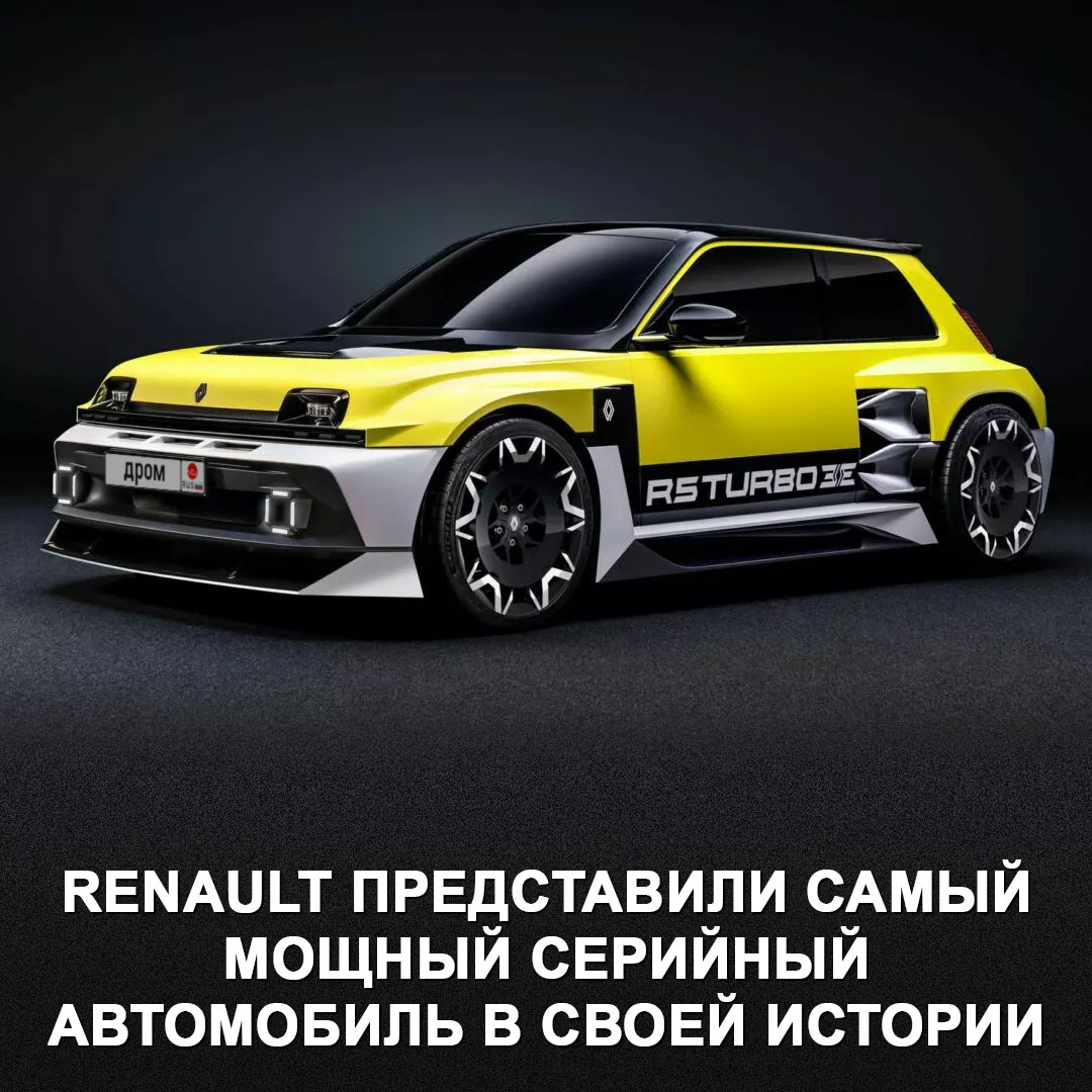 В качестве концепта Renault 5 Turbo 3E представили в 2022 году, а недавно объявили, что в продажу автомобиль поступит уже в 2026-м. Трёхдверка получила полностью уникальный дизайн, углепластиковый кузов и 500 л.с. С такими показателями хэтчбек стал самым мощным среди серийных моделей Рено. Разгон до 100 км/ч занимает менее 3,5 сек. Ориентировочно Renault 5 Turbo 3E будет стоить $125 000, то есть почти 13 000 000 ₽ по текущему курсу. #дромтачкадня #автомобиль #машина #электромобиль #renault #хэтчбек