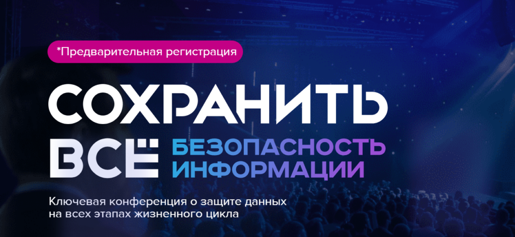 Конференция «Сохранить всё: безопасность информации» состоится 16 октября 2025 года в Москве. Ключевая конференция о защите данных на всех этапах жизненного цикла. Все о новейших тенденциях и решениях в области информационной безопасности и защиты данных Вы получите ценные знания и инструменты работы от специалистов отрасли: Оригинал публикации на сайте CISOCLUB: "Сохранить всё: безопасность информации 2025". Смотреть публикации по категориям: Новости | Мероприятия | Статьи | Обзоры | Отчеты | Интервью | Видео | Обучение | Вакансии | Утечки | Уязвимости | Сравнения | Дайджесты | Прочее. Подписывайтесь на нас: VK | Rutube | Telegram | Дзен | YouTube | X.