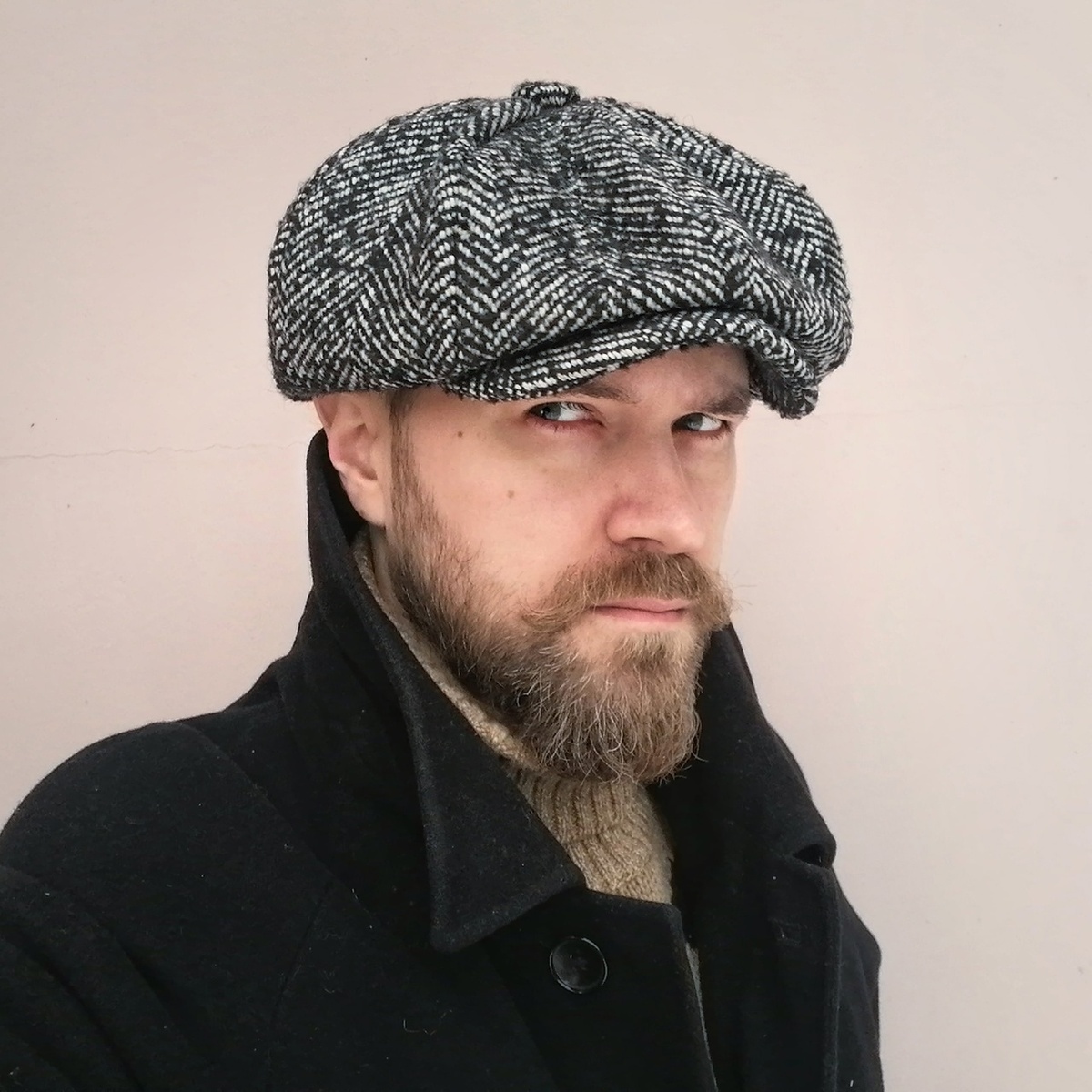 Я сомневался, что из этой идеи что-то получится. Ткань, которую я выбрал, была довольно необычной: крупная, с крапинками, которые выглядели немного хаотично. Но клиент, увидев её, сразу сказал, что ему нравится. Это было неожиданно, ведь обычно люди обращают внимание на более гладкие и однородные материалы. Пару дней назад у меня появилась новая ткань. Я решил попробовать её в деле и создал несколько образцов. Результат меня приятно удивил: ткань выглядела дорого и богато. Это была пальтовая ткань из четырёх цветов: чёрного, белого, серого и кремового, с мелкими крапинками. Крупное плетение создавало эффект «плетёнки», а отдельные нити, которые были хорошо видны, придавали ткани особую текстуру. Уже есть первый заказ на такую кепку. Сегодня она поедет к своему новому владельцу, и я рад, что смог создать что-то, что действительно понравилось человеку. Ткани осталось всего на две кепки. Это немного, но уникальность этого материала в том, что найти его очень сложно. Бывают похожие ткан
