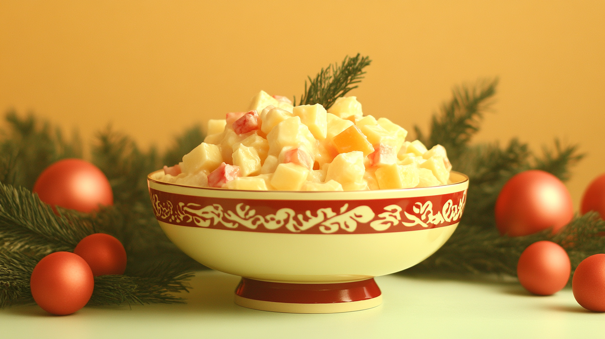 Если задуматься, то оливье — это настоящий культ, которому сложно найти альтернативу на новогоднем столе. Секрет его успеха кроется не только в заправке, но и в слое коллективной памяти. В каждой семье есть своя вариация оливье: кто-то добавляет яблоко, кто-то предпочитает колбасу вместо курицы, а кто-то вообще идёт на кулинарную ересь и использует креветки.