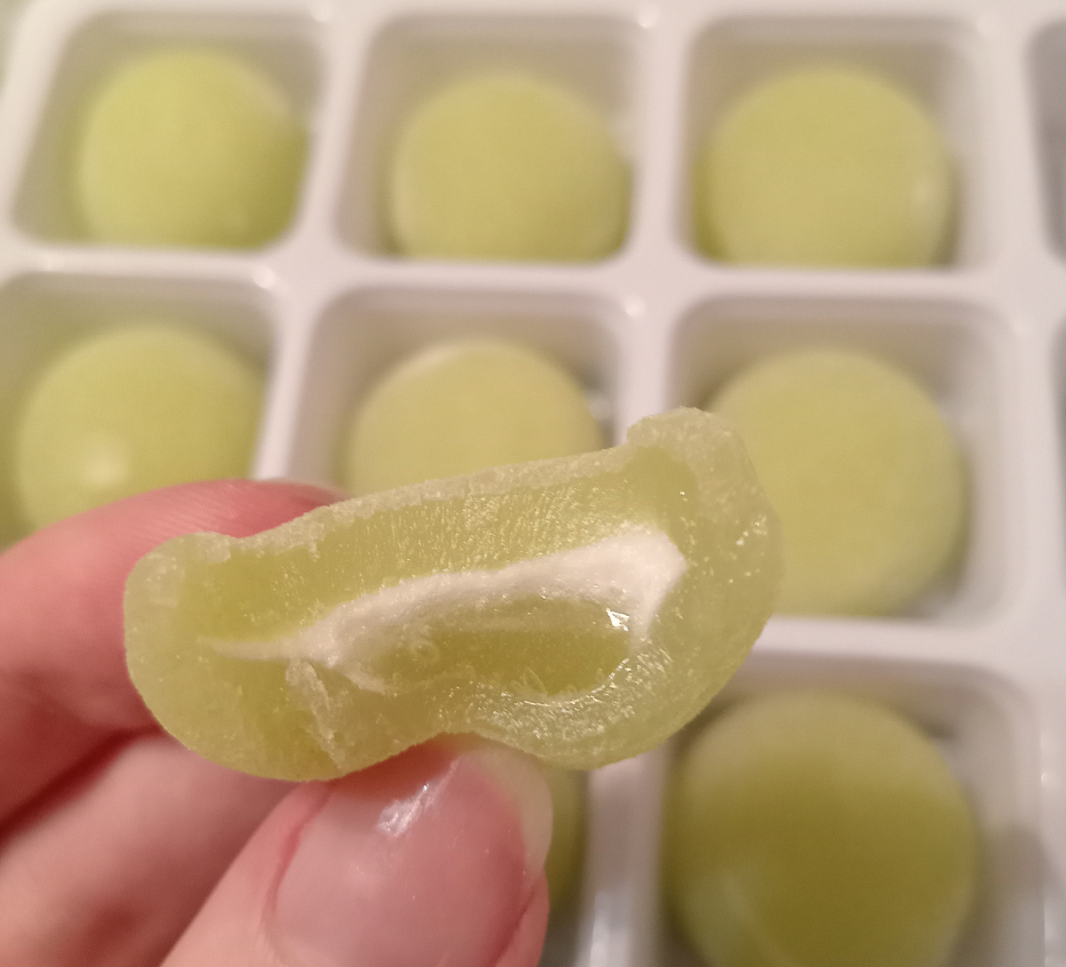 Я решила не делать кучу постов, а вести дневник еды и потом просто опубликую его вам. Вот тут я рассказывала, что наконец попала в райский магазинчик с кучей людей, надо бы ходить в такие места в будни, но увы. Начала я свою дегустацию с виноградных моти и чая 😎 Мотям я ставлю 4⭐из 5, хотя скорее 3.8, но тут чисто мои тараканы, поэтому общий рейтинг я дам 4 Дальше чаечек. Вот такой с жасмином мне нравится! Но я его не взяла, так как хотела попробовать что-то новое. Поэтому лепестки там какие-то мек бек. Всего было 3 вкуса, мне кажется правый - мой - жёлтый самый не вкусный 😂 Ещё я забыла про тофу, но я уже писала, что он тоже бэ. Пустое жареное тесто, где от тофу только название и немного вон помазюкано. Я даже не поняла они туда клали маленький кусочек или в тесто сразу блендарили. Загадка, не требующая отгадки) Сегодня 22.12.2024 я купила острые листики нори с Кимчи 😍 уже в FP. Называются они Чипсы и стоят 41 рубль за 5 грамм. Я одной стороны кажется дорого, и их там мало.