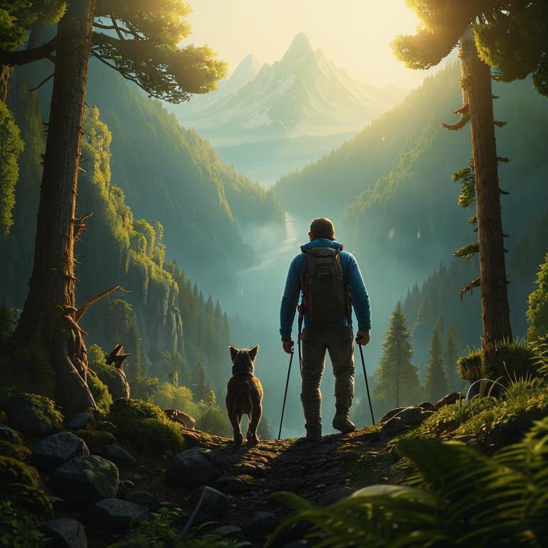 Тишина леса была нарушена лишь редкими звуками шагов, да иногда шелестом травы под лапами собаки. Человек шёл впереди, уверенно пробираясь сквозь густые заросли кустарника. Его глаза были устремлены вперёд. Рядом с ним бежала собака – верный спутник всех его путешествий. Они шли уже несколько дней, оставив позади города и дороги, где люди суетились в своих заботах о деньгах и власти. Здесь же, среди величественных гор и бескрайних лесов, царила другая жизнь – дикий мир, полный опасностей и красоты.