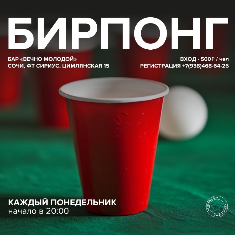 23 декабря. Бирпонг в баре «Вечно Молодой» Регистрация: +7(938)468-64-26