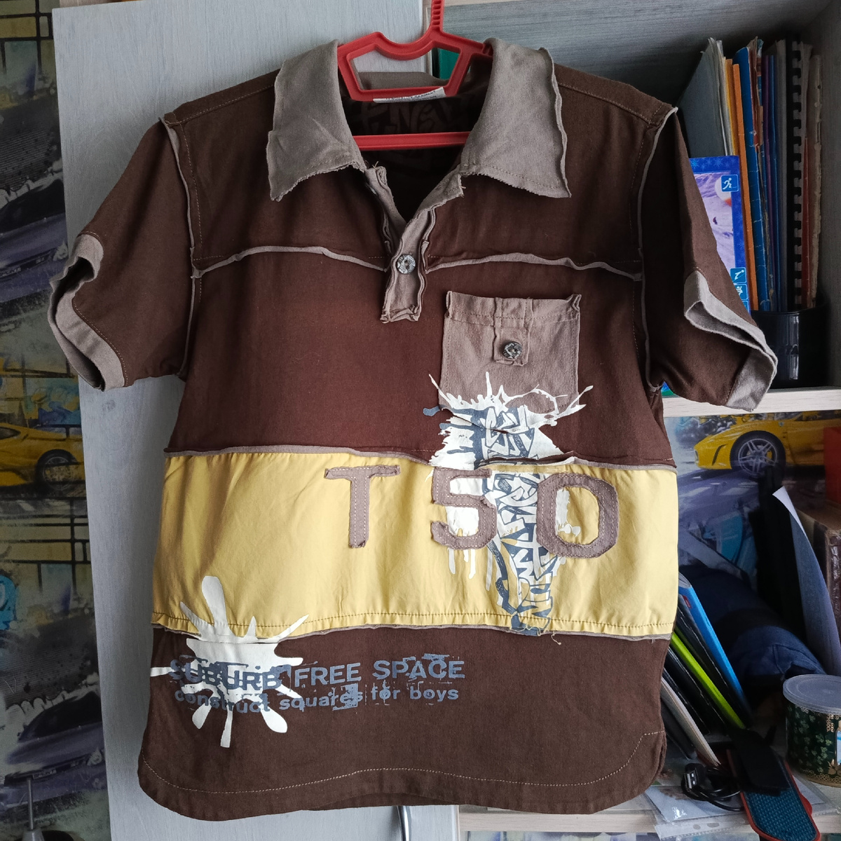 Эта футболка ещё интересна тем, что тут термотрансфер приклеили поверх всех слоев, а потом разрезали.