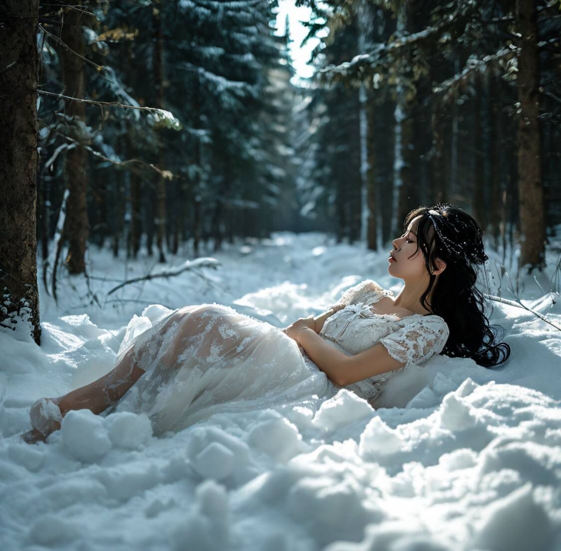 Тело девушки лежало в сугробе под елью… там же, где накануне ее оставили деревенские мужики. Иссиня черные волосы расплескались по белоснежному покрову волнами, а длинная рубаха из тонкого сукна покрылась играющими в солнечных лучах искрами.