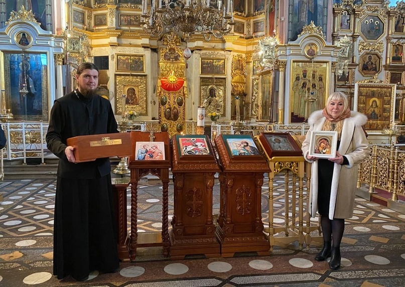 22 декабря на Божественной литургии президент Фонда святого мученика Вонифатия Н.С. Мезенцева, в рамках программы Духовно-патриотического воспитания, передала Приходу Преображенского храма города Иваново следующие святыни: