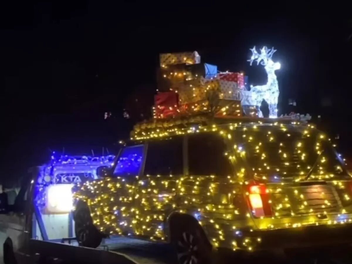 Многих также заинтересовал вопрос, почему легковушку везут именно на эвакуаторе. Как оказалось, на елочной композиции в таком виде передвигаться запрещено.