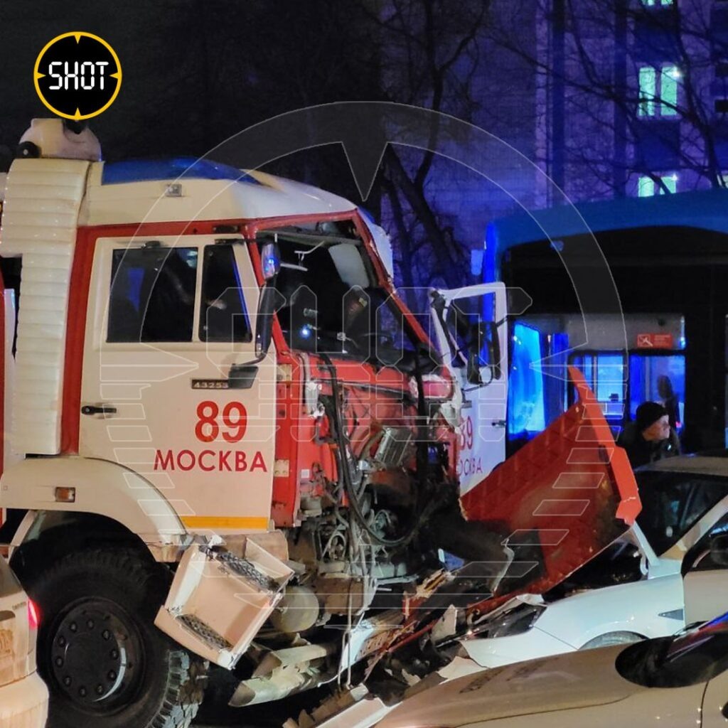 В ГАИ назвали причину массовой аварии в Москве, где столкнулись КАМАЗ, автобус и пожарная машина, число пострадавших выросло