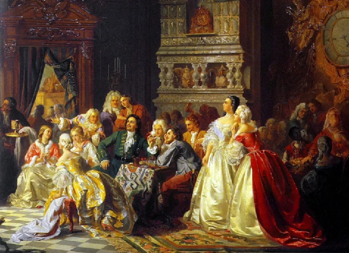 Во время своих путешествий по Европе, в частности по Франции, Петр I был в восторге от званых вечеров, на которых люди общались друг с другом в непринужденной обстановке. Здесь собирались инженеры, художники и ученые, и царь наслаждался общением с ними в непринужденной обстановке.