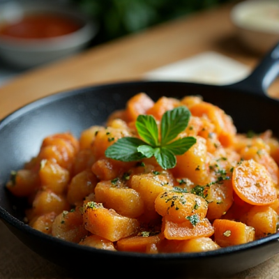 Морковный рулет с плавленным сыром — это легкое, но невероятно вкусное блюдо, которое идеально подойдет как для праздничного стола, так и для повседневного ужина. Сочетание мягкой текстуры моркови и насыщенного вкуса плавленного сыра делает его уникальным и незаменимым. Давайте приступим к созданию этого кулинарного шедевра! Ингредиенты: Приготовление: 1. Подготовка моркови: Начнем с основной части нашего блюда — моркови. Вымойте морковь, очистите ее от кожуры и натрите на мелкой терке. Чем мельче натертую морковь, тем более нежной получится текстура рулета. После натирания моркови аккуратно отожмите ее, чтобы избавиться от лишней жидкости. 2. Приготовление теста: В глубокой миске смешайте натертую морковь с яйцами, добавьте 2-3 столовые ложки муки. Тщательно перемешайте, чтобы масса стала однородной. При необходимости, можно добавить 1-2 столовые ложки сметаны или майонеза — это придаст рулету легкость и воздушность. Посолите и поперчите по вкусу. 3. Жарка теста: Разогр