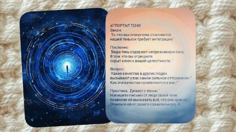 И сегодня нам выпала карта №1 "Портал тени" – словно приглашение в путешествие к самим себе, к тем частям души, которые мы научились мастерски прятать не только от других, но и от себя. Вот послание карты: