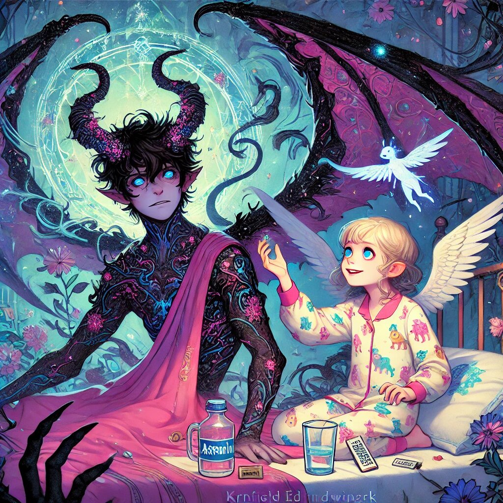 «Ангелочек в пижамке с единорогами! Гадость какая! — подумал демон. — Ангелочек сам по себе не подарок, а тут ещё эти мерзкие, рогатые лошади!» С единорогами у демона были свои счеты, давние.