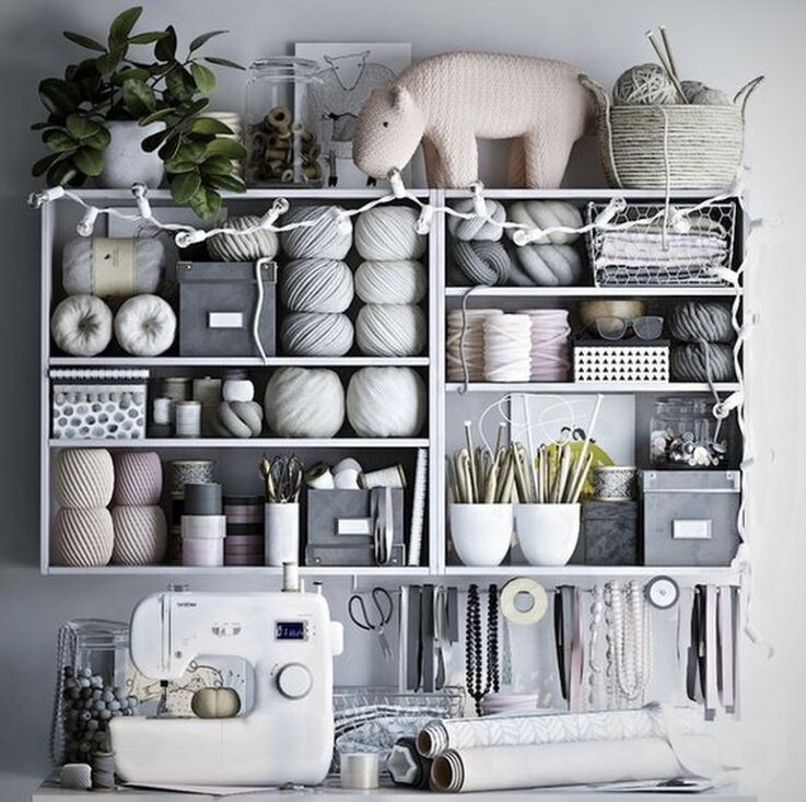 - Полки и ящики. Полки и ящики помогают эффективно использовать вертикальное пространство и организовывать хранение пряжи и инструментов.