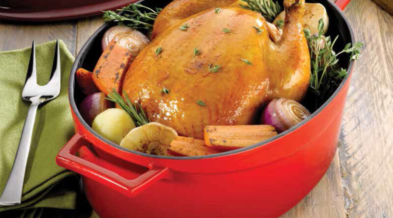 - Чугунные. Классический вариант. Изначально посуду создавали для томления птицы целиком или крупными кусками в печи или духовке. Толстостенный, тяжелый, хорошо удерживающий и равномерно распределяющий тепло чугун – идеальное решение. Немаловажную роль играла и его выносливость – это долговечный материал, устойчивый к механическим и температурным воздействиям. Птицу можно было готовить на углях, оставлять в печи, не волнуясь, что посуда выйдет из строя.