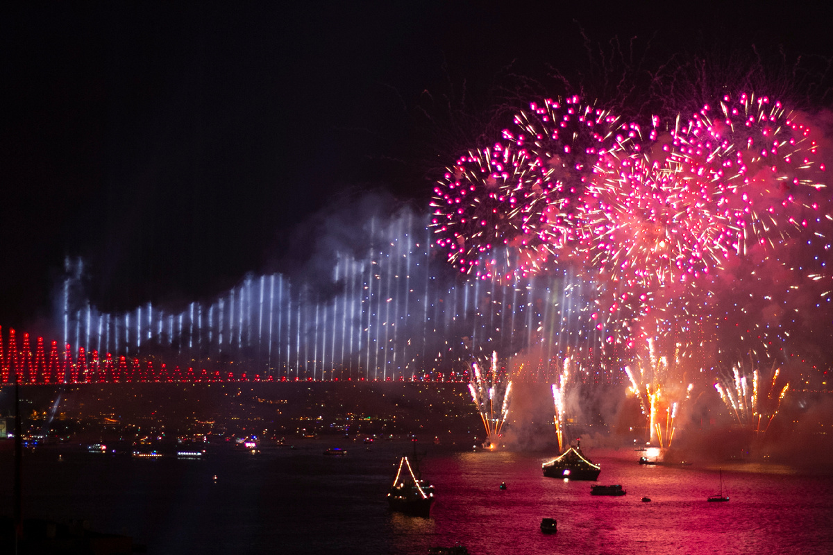 Заветную полночь можно встретить на Галатском мосту, наблюдая за фейерверками. Смешаться ли при этом с весёлой толпой на верхнем ярусе или вольготно разместиться за забронированном заранее столике в одном из рыбных ресторанов нижнего, решайте сами.