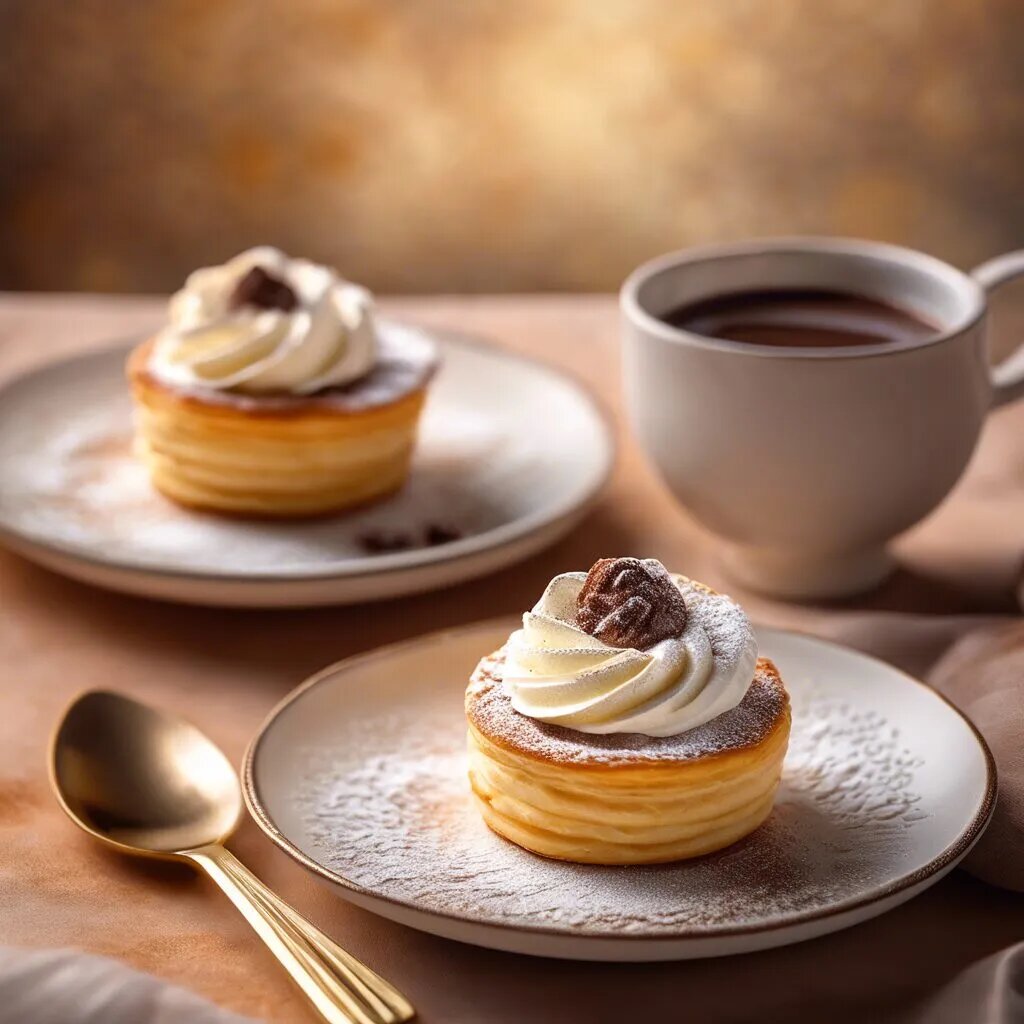 Ингредиенты: - 1 упаковка слоеного теста (можно использовать готовое) - 200 мл сливок (для взбивания) - 2-3 ст. ложки сахара (по вкусу) - Ванильный сахар (по желанию) - Какао-порошок или сахарная пудра для посыпки (по желанию) ### Приготовление: 1. **Подготовьте тесто**: - Разогрейте духовку до 200°C. - Раскатайте слоеное тесто на столе, нарежьте на небольшие квадраты или прямоугольники. - Переложите на противень, застеленный пергаментом. 2. **Выпекание**: - Выпекайте в разогретой духовке 15-20 минут до золотистой корочки. Дайте остыть. 3. **Приготовление крема**: - В глубокой миске взбейте сливки с сахаром и ванильным сахаром до устойчивых пиков. 4. **Сборка пирожных**: - Возьмите одно печенье, намажьте на него немного крема, затем положите второе и снова намажьте крем. Повторяйте, пока не достигнете желаемой высоты. - Можно также сделать однослойные пирожные, просто укладывая крем между двумя слоями теста. 5. **Украшение**: - Посыпьте готовые пирожные какао-порошком или сахарной пудр