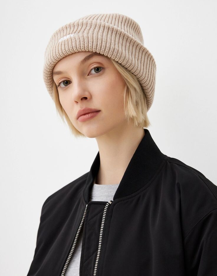 Классическая трикотажная шапка, которая подходит практически всем. Она эластичная, не стягивает голову и мягко обхватывает волосы, минимально нарушая укладку. Отлично смотрится с пальто, пуховиками и парками.