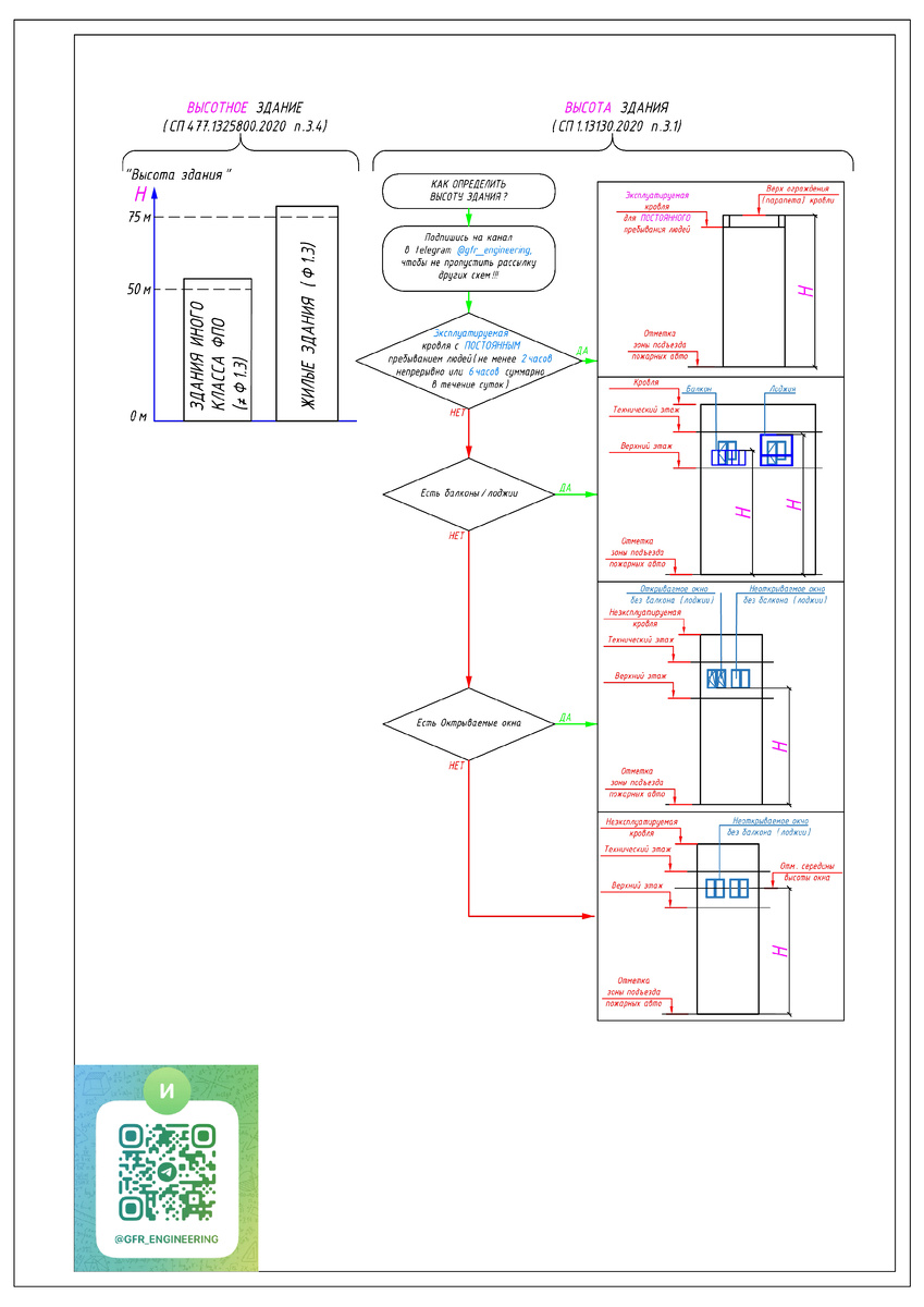 Чтобы для классификации каждого объекта не открывать правила определения "высоты" здания и не разбираться в применяемых терминах и определениях, сделал простую графическую подсказку-шпаргалку: