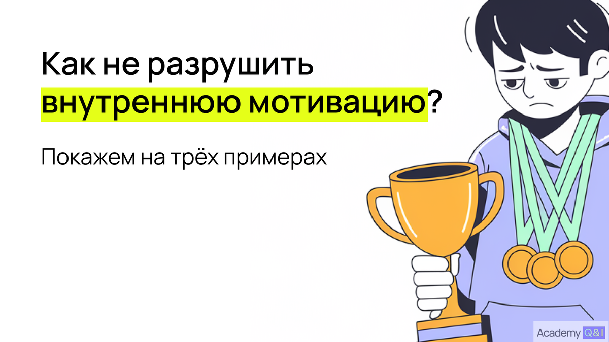Проснувшись однажды утром после беспокойного сна, вы обнаружили, что ваш ребёнок превратился в человека, которому ничего не интересно. Так бывает из-за недостатка внутренней мотивации. Что приводит к этому? Перескажем самую суть ↓ Экспериментальные исследования показывают: внутренняя мотивация эффективнее внешней. Внешняя мотивация — это награды (конфеты, подарки, деньги), чьё-то одобрение (родителей, учителя, начальника) и страх наказания. Внутренняя мотивация растёт из личных интересов, желаний и чувства удовлетворения. Когда ты бежишь в музыкалку, потому что обожаешь сольфеджио, а не ради нового айфона или из страха лишиться планшета. Нам тоже сложно поверить, но такие люди существуют. Внешняя мотивация не плоха сама по себе. Она полезна на старте и помогает на коротких дистанциях. Но если поощрять только на внешними стимулами, вы рискуете превратить ребёнка в человека, которому ничего не хочется. Для долгосрочных результатов нужно развивать внутреннюю мотивацию: она даёт радость, э