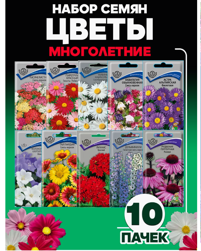 В этом году все чаще стали появляться предложения от Вайлдберриз в интересном формате: семена предлагаются не по одной пачке, а целыми наборами. Причем наборы семян подбираются сразу или по одной какой-то культуре, или сразу по нескольким. Например встречала наборы семян специально для открытого грунта или специально для выращивания в парнике. Есть наборы семян только ранних культур или самых неприхотливых. Но главное - это цена. Например набор из восьми-десяти пакетиков может стоить столько же, сколько по-отдельности стоят буквально один или два пакетика. Получается даже дешевле, чем в самом дешёвом магазине семян. Кроме того, семена действительно подобраны отлично. Вот, например, набор многолетних цветов от фирмы Поиск: ведь здесь собраны наши самые любимые виды цветов. Для тех, кто только осваивает дачный участок и только начинает его благоустраивать, такая покупка - настоящая находка. Ну а я, как всегда, заинтересовалась овощными культурами. А если быть точнее, то перцем. Наборов