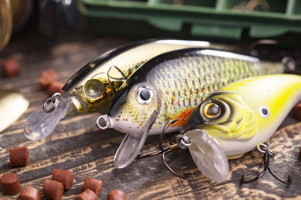 - Для хищной рыбы (щука, окунь, сом) подойдут спиннинги с блеснами или воблерами.