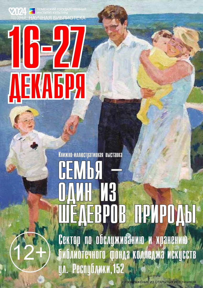 В читальном зале колледжа искусств (ул. Республики, 152, ауд. 1103) научной библиотеки ТГИК открыта книжно-иллюстративная выставка «Семья – один из шедевров природы. Образ семьи в литературе, музыке и живописи».