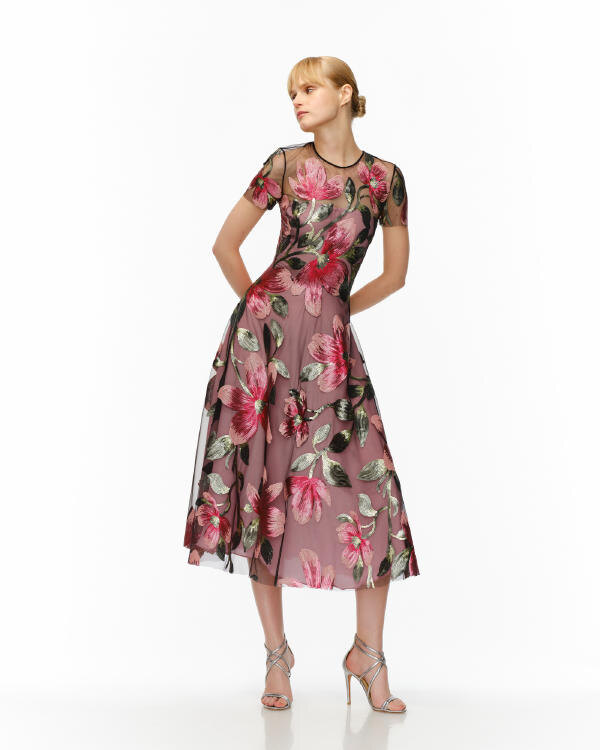 Он делает ставку на цветочные принты и плавные силуэты, вышивку и пышные юбки...